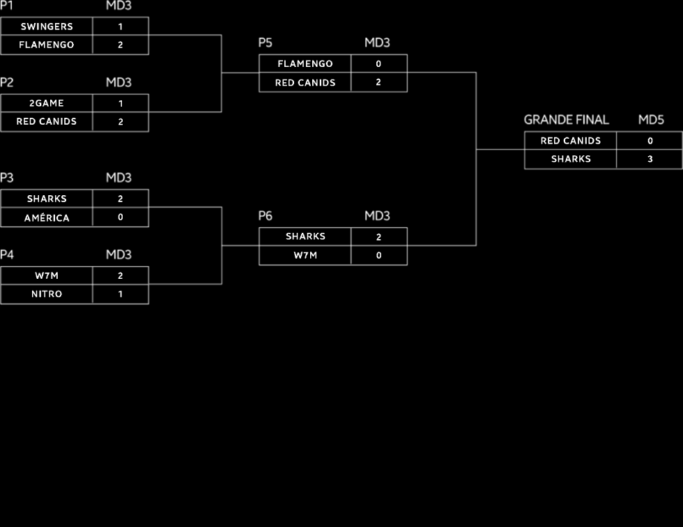 - No formato de eliminação simples (md1), com partidas finais melhor de três (md3)